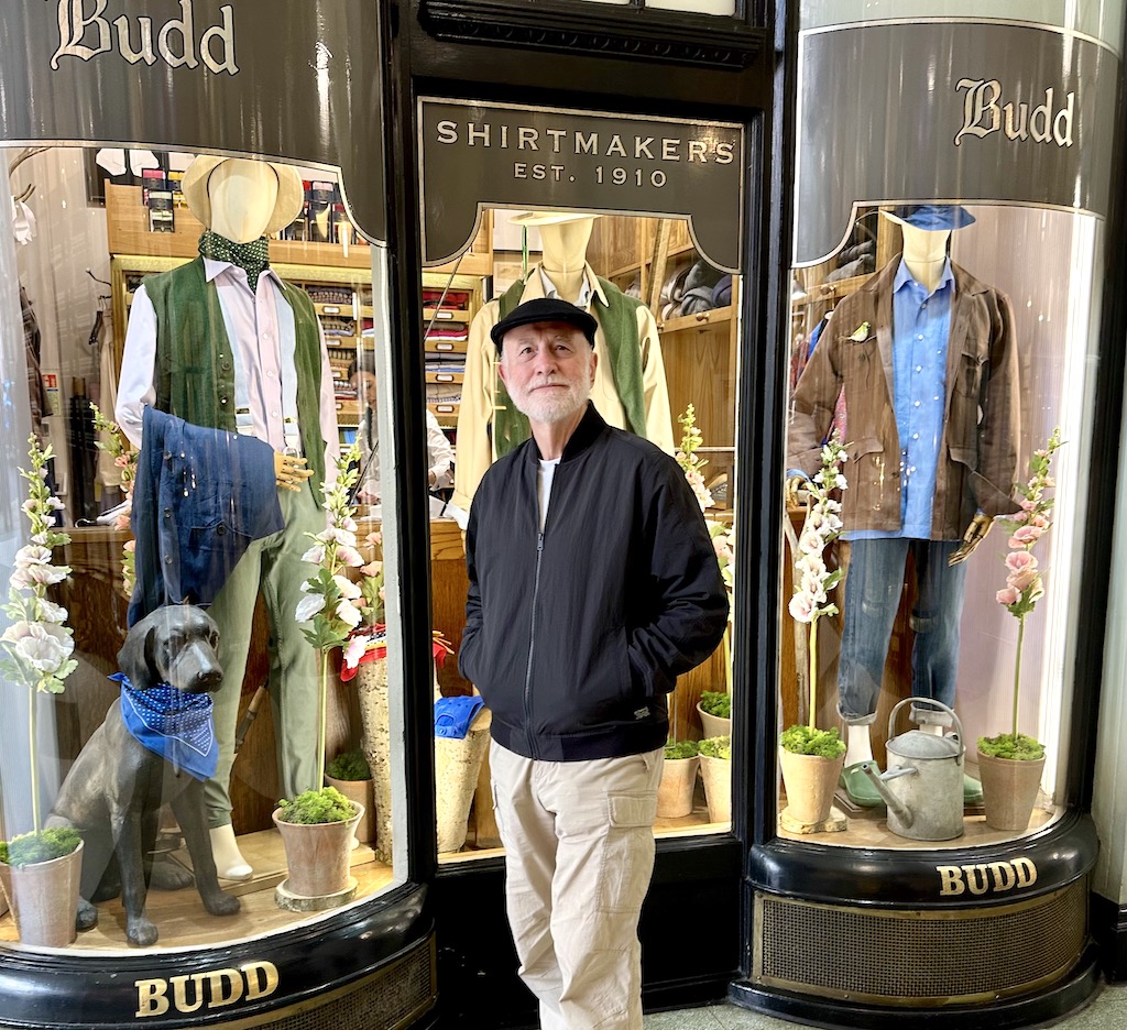 Even before we left Perth, I’d promised to buy Roy a special black tie dinner shirt from Budd’s in Piccadilly Arcade. Every year, they used to come up with a new design, and he loved them: the collar, cuffs and shirt-front are plain white piqué, as you’d expect; but the rest of the shirt, revealed in all its glory only if and when you take off your jacket, is an unexpected riot of colour and pattern.
